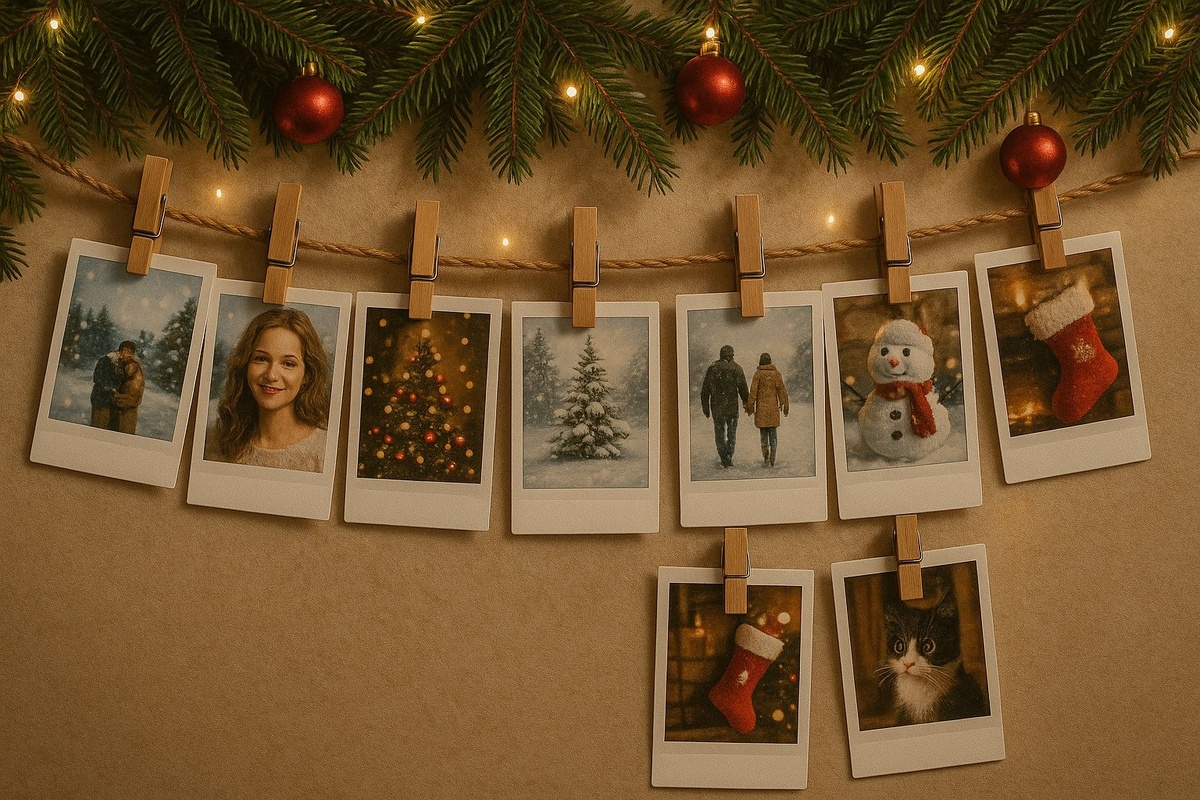 Новый год — это идеальное время, чтобы наполнить дом теплом, уютом и атмосферой праздника. Один из лучших способов создать это особое настроение — сделать украшения своими руками. Они не только делают интерьер уникальным, но и дарят радость от самого процесса творчества. В этой статье вы найдете несколько простых и эффектных идей для создания новогоднего декора своими руками. Фотогирлянда "Лучшие моменты года" Создайте уникальное украшение, которое наполнит дом теплыми воспоминаниями. Отберите самые яркие и радостные фотографии за год — те, что вызывают особые эмоции и приятные ассоциации. Оформите их в стиле полароидных снимков, используя белые рамки и характерный квадратный формат. Для этого можно воспользоваться графическими редакторами или специальными приложениями. Готовые фотографии разместите на плотной бечевке, закрепляя их деревянными декоративными прищепками. Такая гирлянда прекрасно смотрится как на стене в гостиной, так и в качестве необычного украшения для елки. Каждый ра