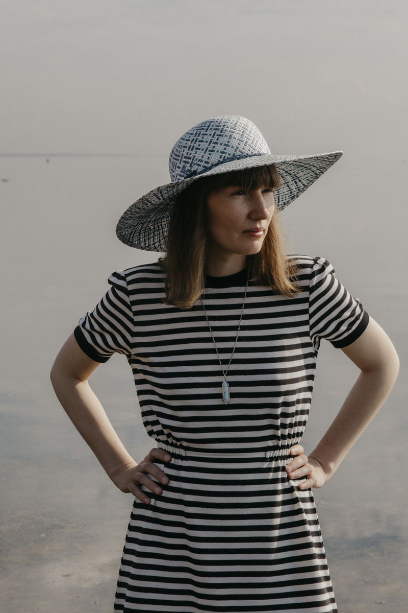 Фотосессия солиста группы Ритм-Центр Полины Волковой на Финском заливе, сентябрь 2025. Фотограф - Юлия Чопорова. К альбому "Смерть ягуара".