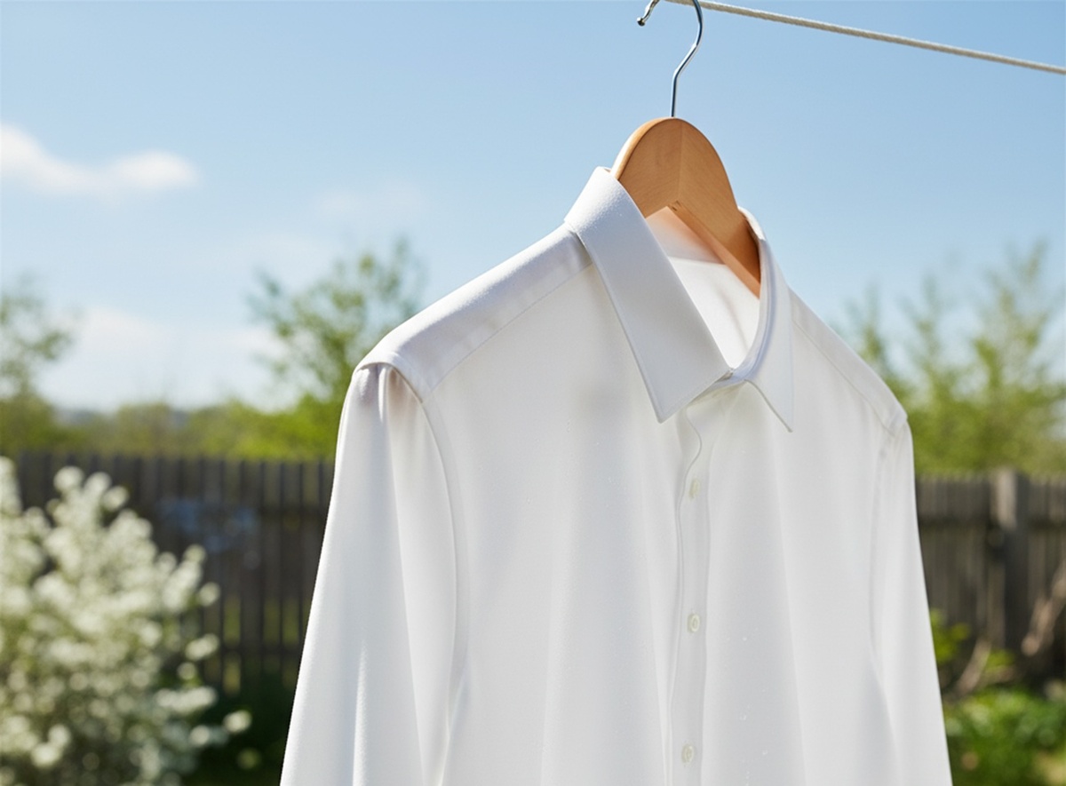 Если рубашка нужна уже завтра, начните с замачивания проблемных зон — подмышек и воротника. Смешайте две ложки геля для стирки, одну ложку кислородного отбеливателя, ложку соды и стакан теплой воды. Полученную смесь нанесите на пятна, аккуратно вотрите щеткой и оставьте на полчаса. После этого постирайте вещь в режиме «Хлопок» при температуре 40–60 градусов, если это разрешено по ярлыку. В барабан добавьте стандартное количество геля и половину мерной ложки отбеливателя. Обязательно включите дополнительное полоскание. Сушить лучше на свежем воздухе, а если есть возможность — на солнце: ультрафиолет помогает вернуть белизну. Не используйте сушильную машину, пока не убедились, что пятна исчезли — высокая температура может закрепить желтизну. Если следы остались, переходите к более глубокой обработке.