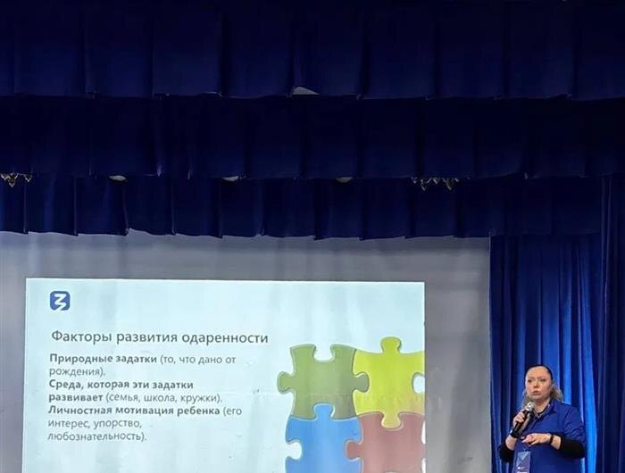 Отдельно спикер отметила три ключевых фактора развития одаренности. Это природные задатки, данные от рождения, среда, которая эти задатки развивает, и личностная мотивация самого ребенка, его интерес и упорство. А также рассказала, как можно распознать одаренность в ребенке.