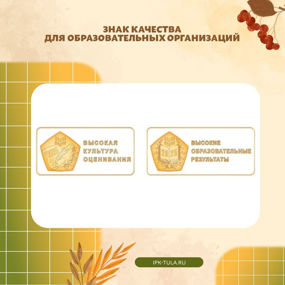 🚀 Лучшие школы Тульской области получили «Знак качества» от Рособрнадзора ✔️22 школы отмечены за высокие образовательные результаты. Знак качества для образовательных организаций реализуется в двух направлениях: «Высокие образовательные результаты» и «Высокая культура оценивания». Он призван отметить сильные и успешные образовательные учреждения, на которые смогут равняться другие. Подробнее Поздравляем всех участников с заслуженным признанием и новыми возможностями для обмена опытом! 🎓✨