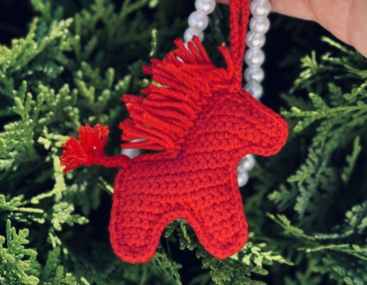 -Пряжа контрастного цвета для гривы и хвоста 📏 Размер готовой игрушки
