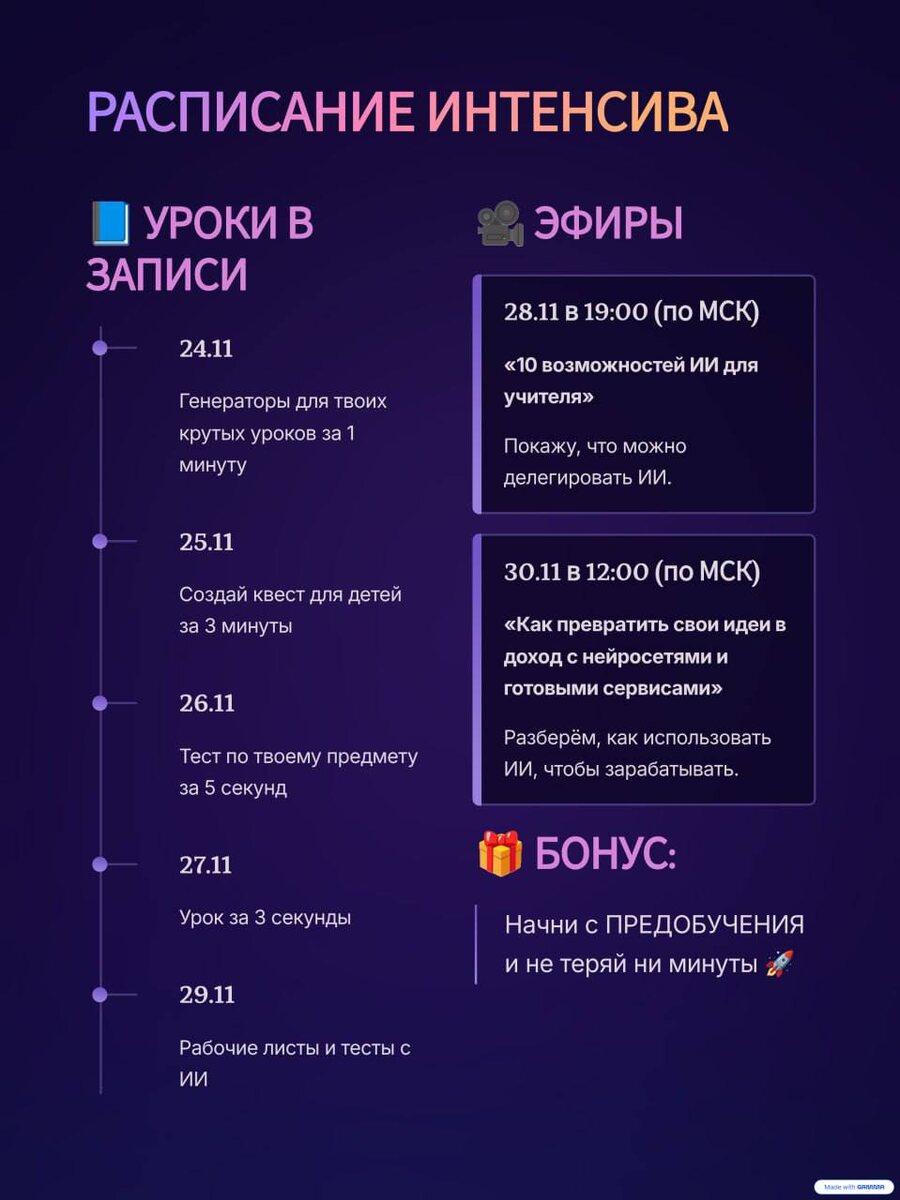 Коллеги, направляю расписание ИНТЕНСИВА «ИИ-ПРОРЫВ: Учитель Будущего
