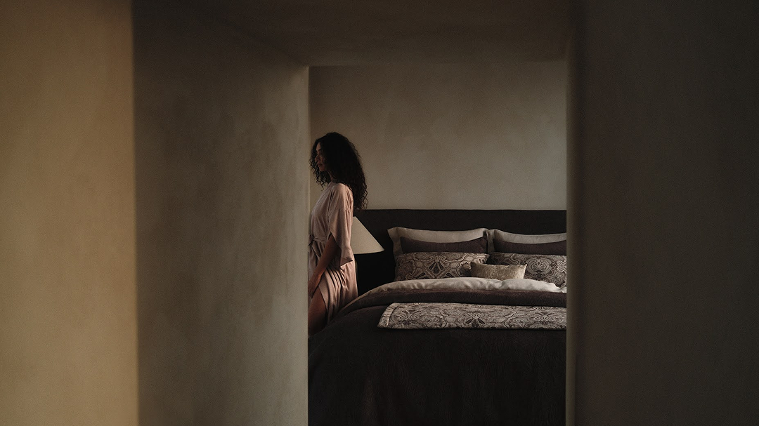 Покрывало будет сочетаться с бельем из коллекции «Селиса» с тем же принтом, напоминающим сложный рисунок кожи рептилии.
