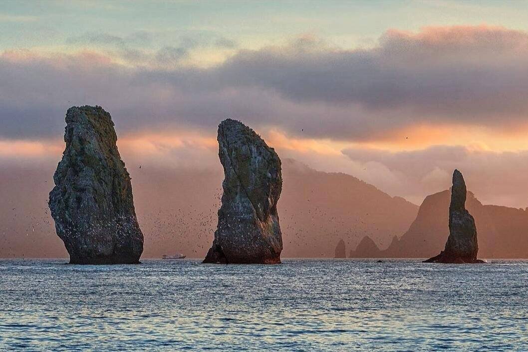 Три Брата – сторожевые камни на входе в Авачинскую бухту не всегда были каменные. Они действительно были братьями и очень любили свой город. Но в те далекие времена на город часто обрушивалась огромная волна – цунами. Люди ни как не могли бороться с ее разрушительной силой. Они убегали в горы и ждали, когда цунами уйдет. И, возвращаясь, каждый раз заново отстраивали город на берегу удивительной бухты. Так продолжалось долго, пока не решили жители города Петра и Павла построить заграждение на входе в бухту. Для этого все: и стар, и мал носили к морским воротам камни. Трудились день и ночь и почти закончили строительство, как увидели, что вода из бухты быстро уходит. Поняли люди, что это цунами снова набирает силу и собирается обрушиться на город. Женщин, детей и стариков отправили в горы, а мужчины продолжали достраивать дамбу. Но выбились из сил и кони, и самые стойкие строители- защитники. А волна уже приближалась. И случилась паника среди людей – они бросились в рассыпную, потому