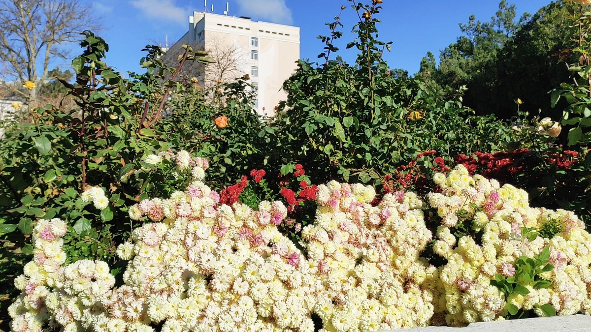 🍁✨ Ноябрь в Крыму — настоящая феерия красок и ароматов, где золото берёз нежно соседствует с зеленью хвойных деревьев — елей, сосен, пихт и кипарисов. Яркие бордовые листья декоративного барбариса создают эффектные контрасты с пышными хризантемами, а бесчисленные цветущие розы добавляют нежных красок этой осени. 🍂 🌹. Приглашаем прогуляться по парку санатория Пирогова. Вдыхайте этот неповторимый крымский воздух, заряжайтесь силами природы и укрепляйте здоровье вместе с нами! 💪💚 Пусть этот ноябрь наполнит вас гармонией, теплом и вдохновением! ❤ 🍂💫 #СанаторийПирогова #НоябрьВКрыму #ЗдоровьеСПриродой #ОсенняяМагия #ЦелебныйКрым #ОсеннийПарк #ВдохновениеКаждыйДень