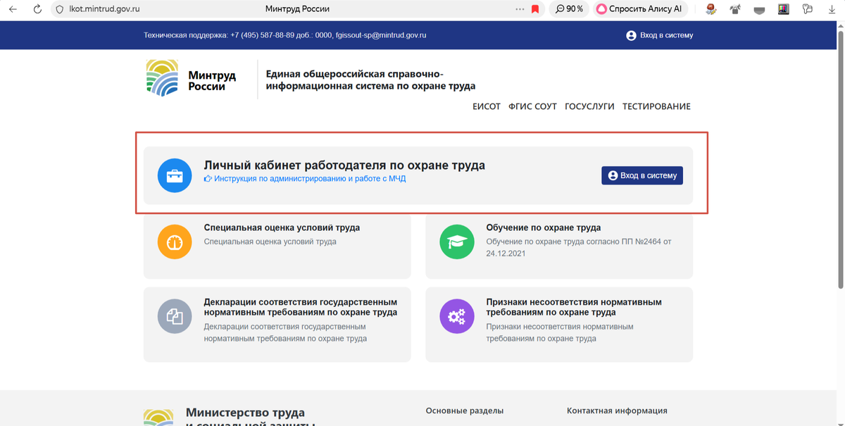 - Войдите в личный кабинет работодателя через ЕСИА (Госуслуги).