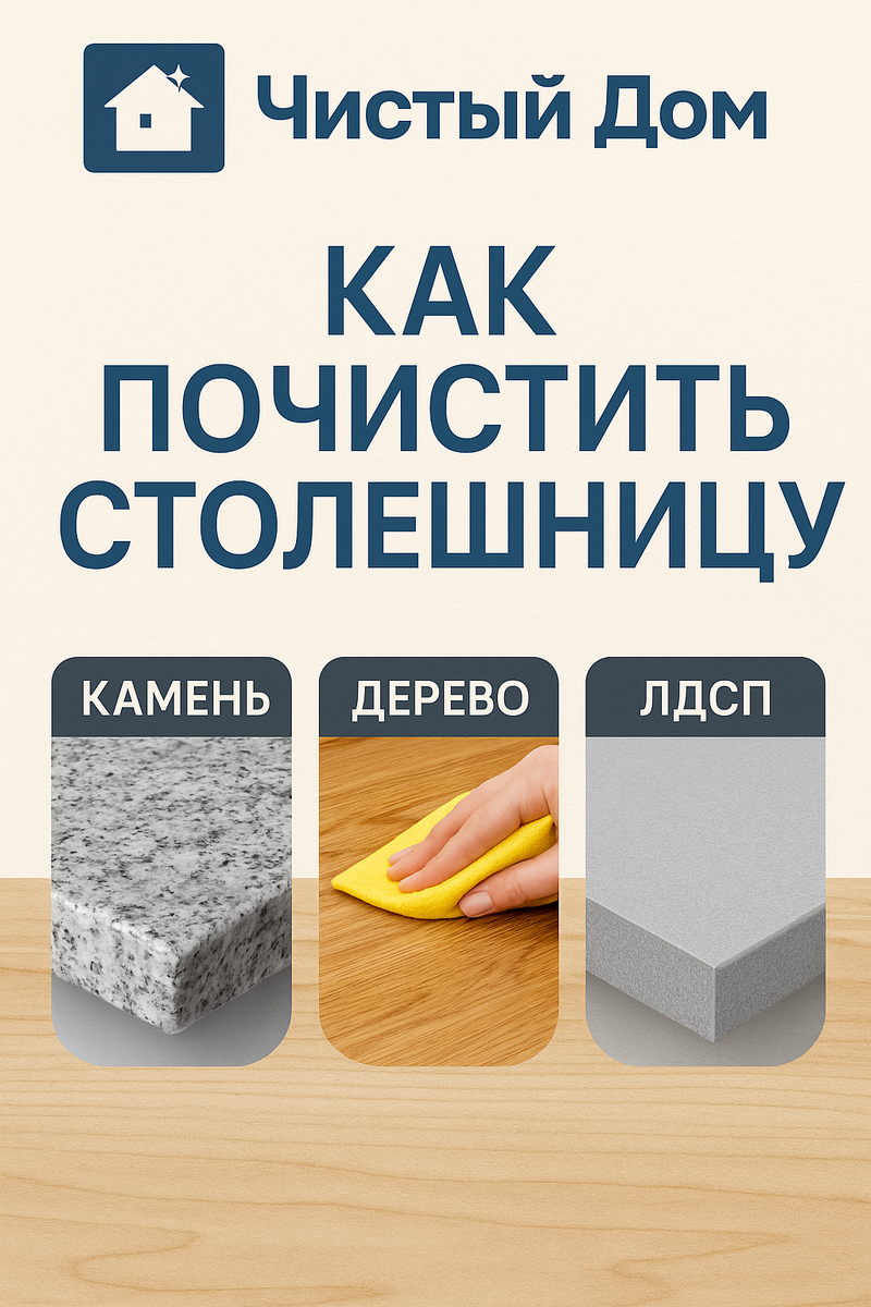 Но уход зависит от материала! Камень, дерево и ЛДСП требуют разных средств и техник, иначе поверхность можно испортить. Разбираем, как чистить каждую столешницу правильно. Камень прочный, но боится кислот и абразивов. Лучший мягкий раствор: Протереть → вытереть насухо микрофиброй. ⚠ МРАМОР нельзя обрабатывать уксусом, лимоном и химией с кислотой — появляются тусклые пятна. Нанесите: Оставьте на 3 минуты → протрите. Подходит только для кварца и гранита: ⚠ Для мрамора сода НЕ подходит — царапает. ❌ уксус на мраморе