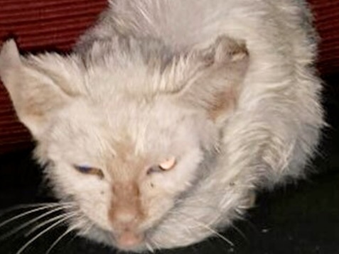 Как это случилось с этим белоснежным котиком. Если на первом фото ему было не до чего, лишь бы как-то выжить, то на втором уже виден явный интерес ко всему происходящему.
