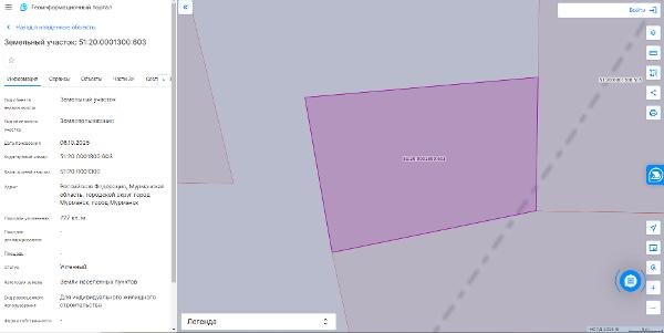 Название: Земельный участок с кадастровым номером 51:20:0001300:603 площадь 727 по адресу Российская Федерация, Мурманская область