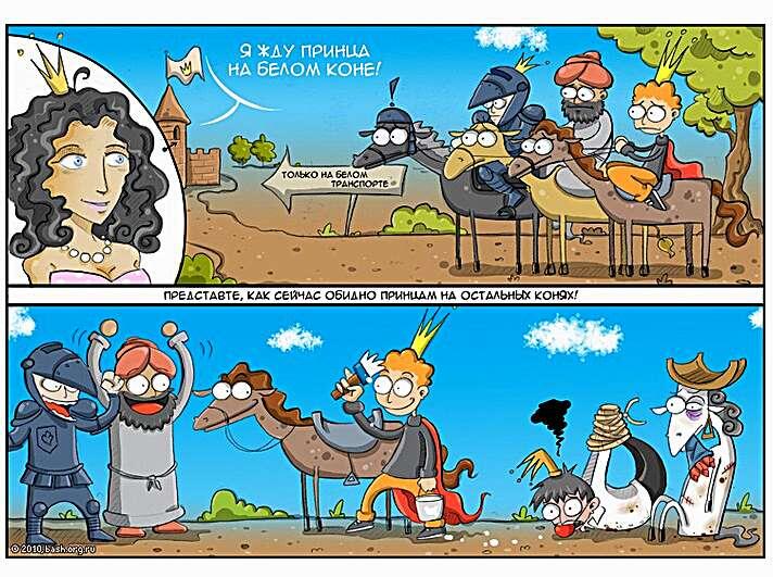 Однако, вне художественных произведений образ принца на белом коне иногда подвергается осмеянию, и существует множество пародий на принца и его коня. Именно такие карикатуры мы сегодня и посмотрим. Надеюсь вам понравится данный юморной сборник из 22-х иллюстраций.