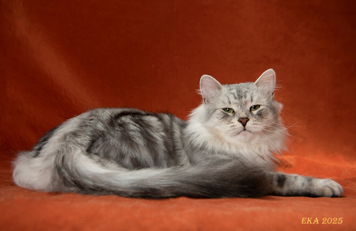 не показала вам фотки нашего "снежного" котика. Мерлин, окрас черный серебристый мраморный. Начинает растить мех к зиме.
