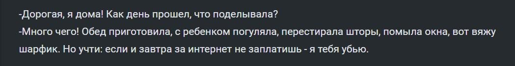 С новой рабочей неделей нас, други мои, будь она неладна. Как выходные прошли? У меня (молитвами Ростелекома) они прошли крайне неоднозначно. Сижу, уставшая как бобик, пытаюсь настроиться на рабочий лад, но выходит из рук вон плохо. А всё из-за выходных, которых не было. Всегда так: всё распланируешь, шепнёшь Богу о своих планах и сразу же - хрясь, всё опять кувырком. Изначально в планах было немного поработать в субботу днём (коллеги идею поддержали, работы перед НГ много и пяти рабочих дней на неё уже не хватает) и по полной программе отдохнуть в воскресенье. Что могло пойти не так, да? Суббота выдалась как в старом анекдоте, правда, вины мужа в этом не было. С утра - ничто не предвещало. Разве что, новый кофе оказался паршивеньким. К обеду - начали созваниваться с коллегами, планировать задачи... А потом настал день, когда Земля остановилась и кончился интернет. Кто живет в ЦФО - те в курсе аварии на магистрали Ростелекома. Объединяем это событие с привычным уже отсутствием мобильн