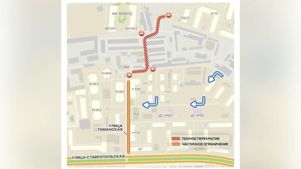 В Краснодаре с 24 ноября начнут строительство сетей ливневой канализации на ул. Таманской. Дептранс Краснодара сообщает, из-за этого движение транспорта будет ограничено и частично перекрыто до 30 сентября 2026 года. Полное перекрытие введут на участке от здания №180 до дома №159/1. Здесь прокладку трубопровода будут вести открытым способом — проезд для автомобилей будет полностью закрыт. На отрезке от здания №180 до пересечения с ул. Ставропольской движение останется, но частично ограниченным. Работы на этом участке выполнят методом горизонтального бурения, без вскрытия дорожного полотна. Водителей просят учитывать изменения при планировании маршрутов и заранее выбирать пути объезда.