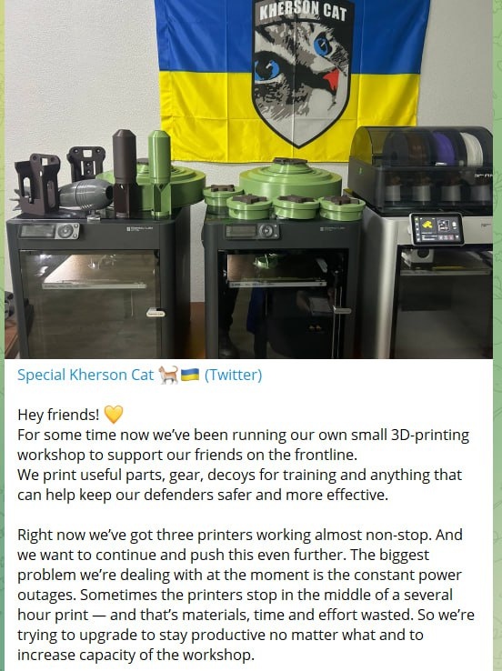 Какол жалуется, что у него перебои с электричеством и поэтому сложно печатать. Именно поэтому мы поддерживаем любую деятельность нашей Армии по уничтожению вражеской энергетической и топливной инфраструктуры. Каждый "блэкаут" - это простой станков и не допечатанные хохлами бомбы, мины и обучающие макеты для ВСУ. 🇷🇺 Умельцы-Фронту