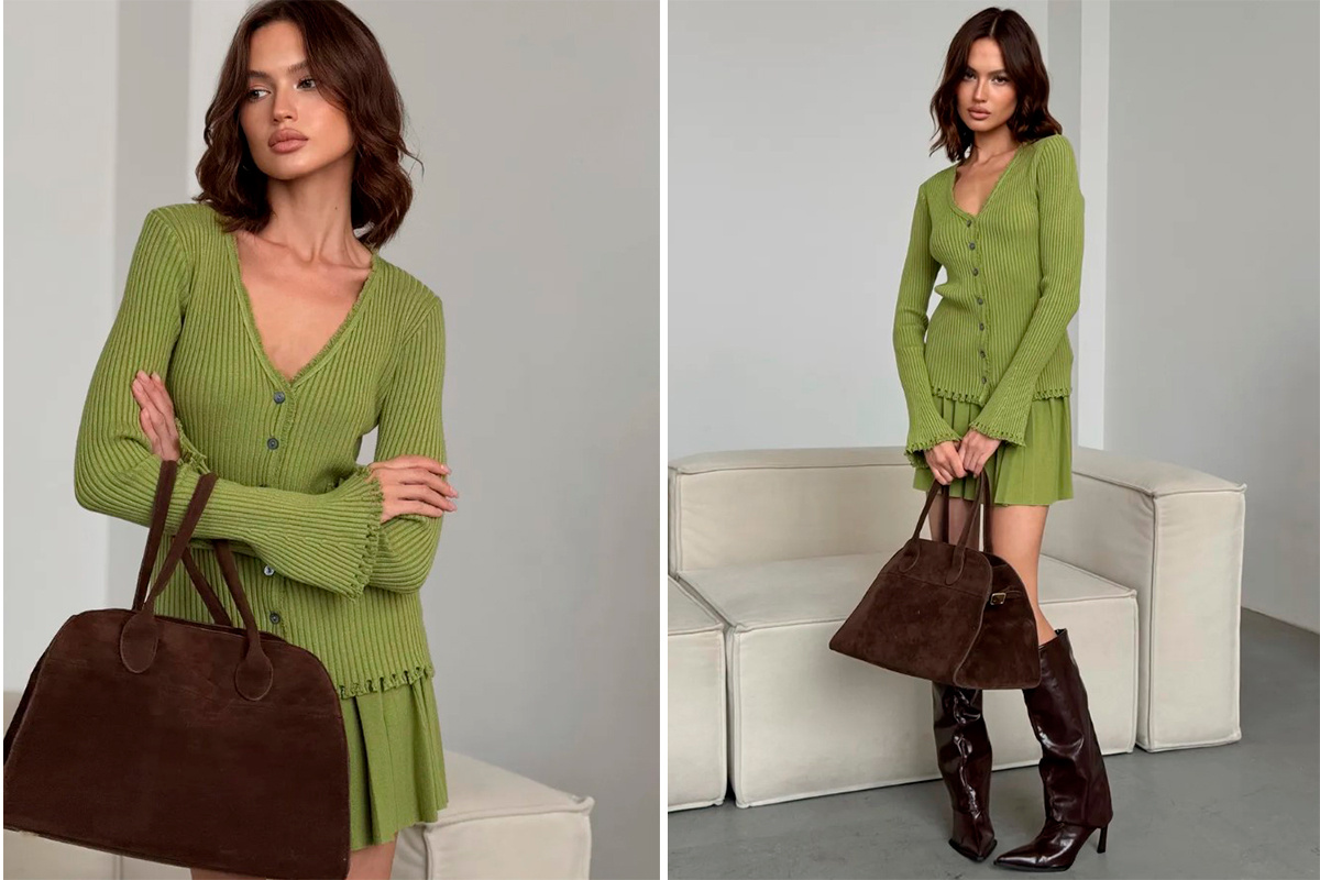 источником идей и хорошего настроения! Первое, на что я обратила внимание - трикотажный костюм с юбкой. Джемпер с длинными расклешёнными рукавами, а юбка мини в складку с эластичной резинкой подчёркивает фигуру и не стесняет движений. Цвета от тёмного оливкового до бордового и сливового. Артикул 528610159 Следующая находка - укороченная экошуба. Мягкая, пушистая, с широким воротником, выглядишь будто на страницах модного журнала. Но самое главное - она тёплая, защищает от ветра и при этом не наносит вреда природе. Цвета тоже радуют: бежевый, ванильно-бежевый, бежево-розовый… можно подобрать под любой гардероб и настроение. Артикул 581267088 Сумка - вот что точно меня покорило. Темно-коричневая замшевая сумка с золотой фурнитурой, вытянутой формой и удобными ручками. Не слишком большая, но всё помещается: телефон, кошелёк, ключи. И при этом она не теряется на фон