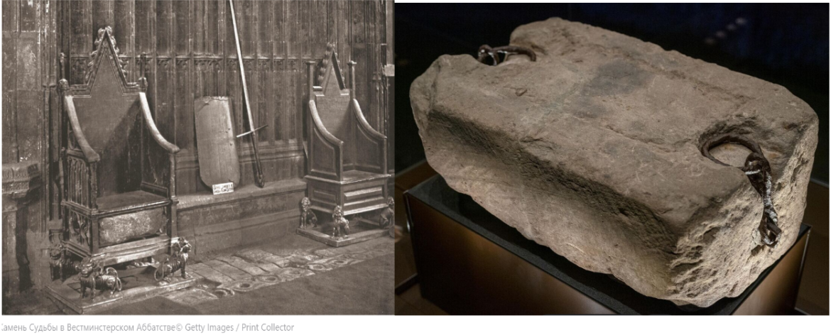 Причина могущества британского престола, вернее одна из основных причин в общем то всем известна, это её колонии в разных странах, в которых англосаксы являются паразитами. Поэтому свою экономику поднять без грабежа кого-то они не могут. Но вот интересно, как это прошивается на корневом уровне в самой Британии, предлагаю рассмотреть один из элементов и взять для себя информацию. Есть один из символов британской монархии - Камень Судьбы или Коронационный камень. Представляет собой прямоугольный кусок древнего песчаника массой 152 килограмма. С одной стороны на камне выгравирован крест, с другой — приделаны два кольца, предназначенные для перемещения. С 1296 года все короли Англии коронуются именно на нем, садясь во время коронации на трон с вмонтированным в него камнем. Считается, что монархия в Великобритании сохраняется до сих пор благодаря этому камню. Там есть много легенд связанных с этим камнем, например, что он способен отличить подлинного монарха от ложного претендента на престо