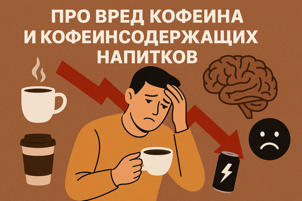 Про вред кофеина и кофеинсодержащих напитков я писал ранее в статьях. Решил добавить информацию, которая действительно может быть полезна моим подписчикам и гостям канала. Задумывались ли вы о том, что в этом мире все так устроено, что где-то прибывает, а где-то в это время убывает? Так вот это про кофеин. Поясню. При употреблении даже чашки кофе/чая с непривычки (или если вы давно не пили) наблюдается подъем настроения/энергии иногда даже чересчур. С одного пакетика самого обычного недорогого черного чая , я писал, можно быть "на подъеме" до 12 часов подряд! Разумеется, когда часто употребляешь кофе/чай/энергетики такого не наблюдается. Точнее, там некоторый "подъем" тоже есть, но значительно слабее и, на короткий срок, час-полтора, после чего снова надо употреблять. Если же вы откажетесь от следующей порции, то вы испытаете некоторый дискомфорт на "отходняке", такой как усталость, даже разбитость, может потянуть в сон, либо захочется покушать, чтобы восполнить утрату сил и, скорее в