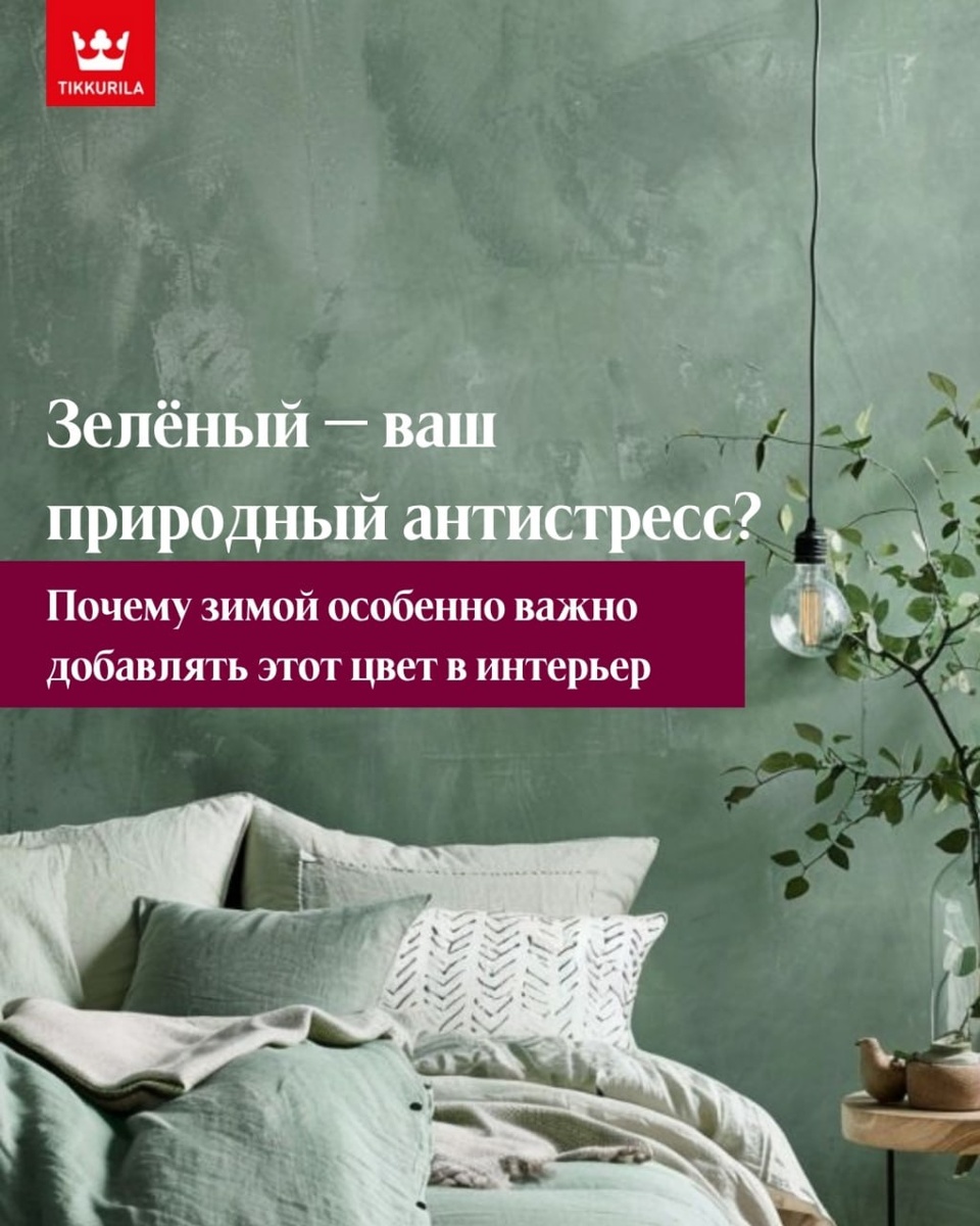 💚Зелёный — ваш природный антистресс? Почему зимой особенно важно добавлять этот цвет в интерьер Что делает наш мозг спокойнее, а интерьер — уютнее, живее и… дороже на вид? Ответ — зелёный цвет. Особенно в те месяцы, когда за окном серо и пусто, а природа будто ушла в спячку. 🌿А если хотите и цвет, и стойкость? Обратите внимание на краску Tikkurila Harmony Velurе от Tikkivala: 🟢глубокоматовый бархатистый финиш, 🟢сотни благородных зелёных оттенков, 🟢стойкость к мытью и износу, 🟢экологичность и безопасность — подходит даже для детских комнат.