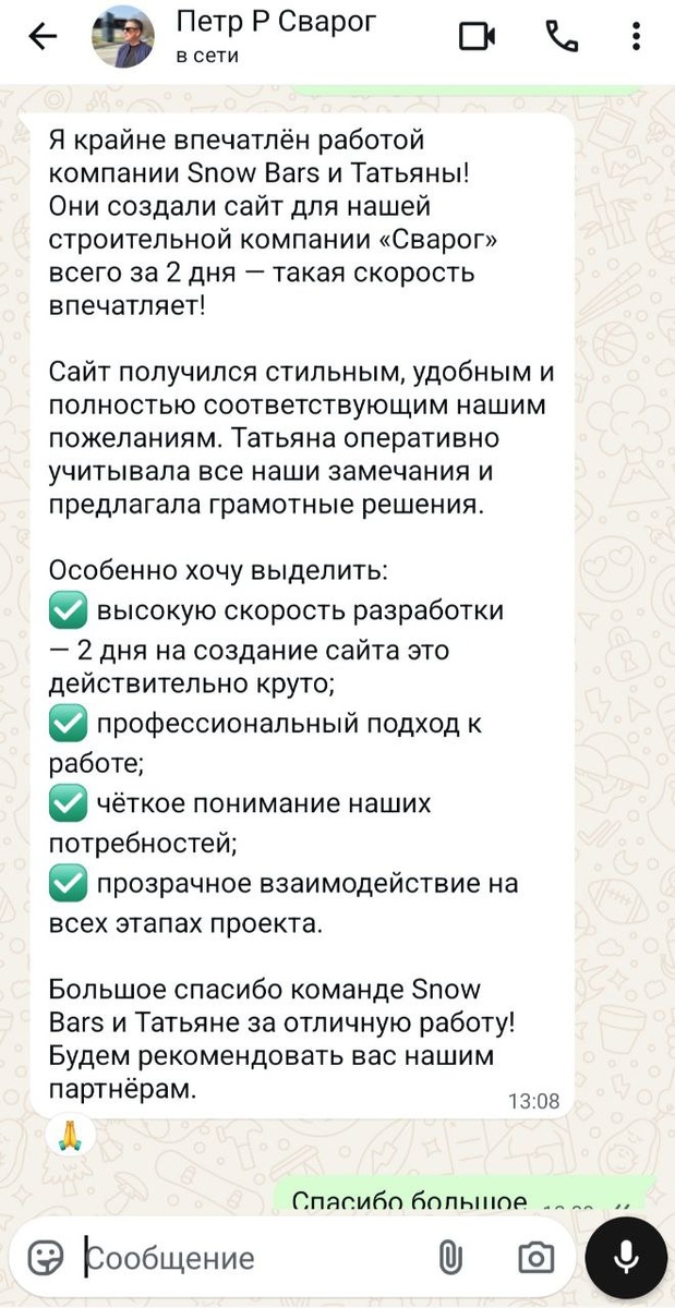 В ответ на пост 🗯🗯🗯 полный текст отзыва Хотите так же? Давайте обсудим ваш проект! 👇 📩 Пишите в личные сообщения или оставляйте заявку на сайте. 🌐 snowbars74.ru #Snowbars #РазработкаСайтов #КонтекстнаяРеклама #SMM #ОтзывыКлиентов #отзыв #отзывsnowbars