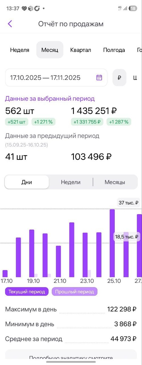 Кого могут вдохновить данные показатели? Это результаты начинающего продавца, который сотрудничает с нами на протяжении трех месяцев. Применяя нашу систему, каждый имеет возможность достичь аналогичных результатов с минимальными рисками. Заинтересованы? Свяжитесь со мной, и я окажу содействие в освоении платформы, а также проведу вас по пути к успешной работе на маркетплейсах.