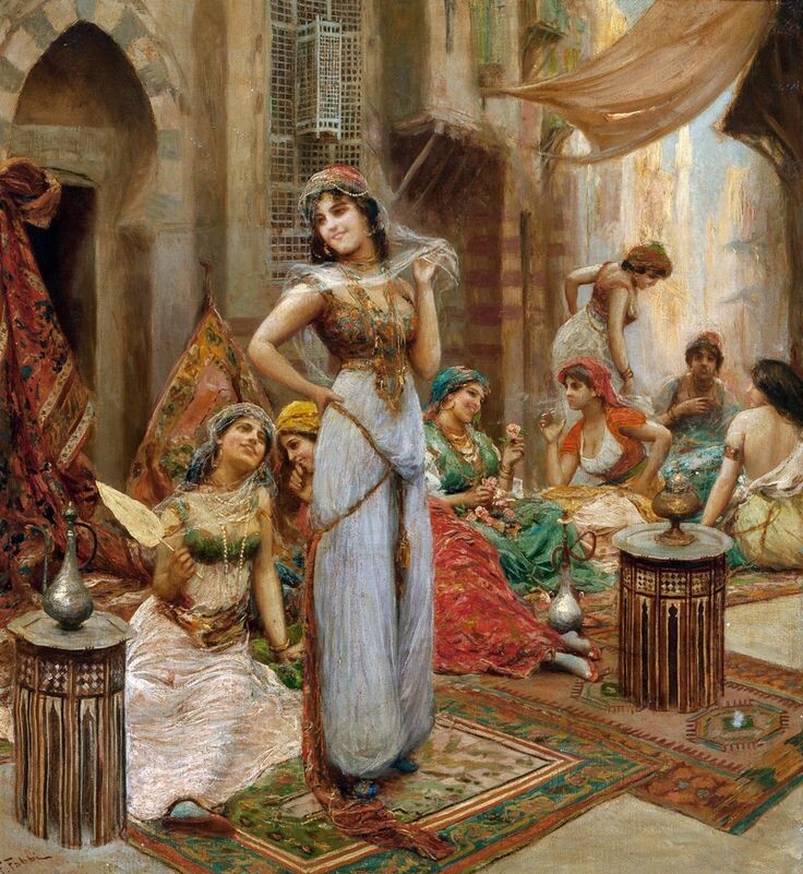Это был целый ритуал. Будущую невеста (особенно для султана или знатного паши) осматривали и оценивали со всех сторон.Специально нанятые женщины проверяли всё: фигуру, состояние кожи, волос, зубов, умение вести беседу, петь, играть на музыкальных инструментах. Девушку могли заставить пройтись, чтобы оценить походку, и даже понюхать, чтобы убедиться в отсутствии дурных запахов.