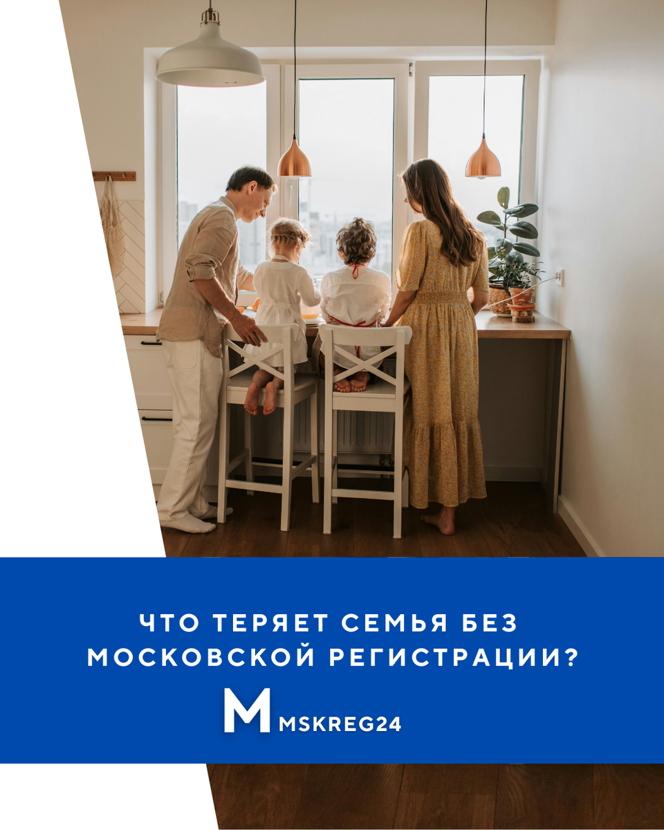 Каждый год всё больше семей приезжают в Москву, чтобы жить, работать и растить детей. Но без московской регистрации семья фактически остаётся вне системы — без доступа к многим правам и льготам, которые положены каждому, кто живёт здесь. Что теряет семья без регистрации: 1. Место в детском саду: без регистрации ребёнка не ставят в очередь или отказывают в зачислении. Родители вынуждены оставлять ребёнка дома или искать частные сады — и платить десятки тысяч рублей ежемесячно. 2. Медицинское обслуживание: без прописки невозможно прикрепиться к поликлинике, оформить бесплатные анализы, осмотры и справки для детсада и школы. 3. Социальные выплаты и пособия: большинство детских выплат, субсидий и компенсаций предоставляются по месту регистрации.