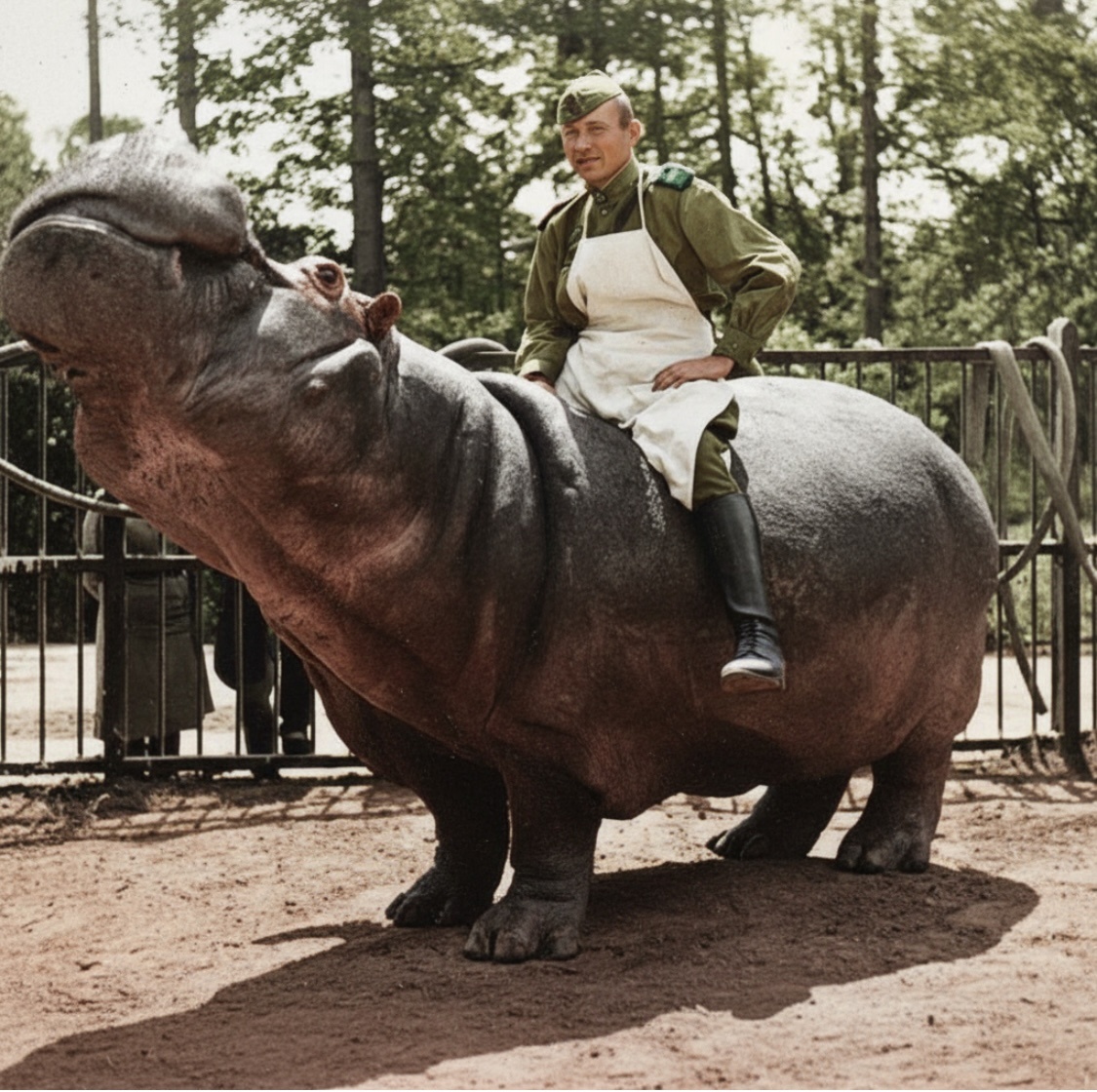 В 1945 году, когда Кёнигсберг переживал один из самых страшных штурмов Второй мировой войны, мало кто мог подумать, что среди разрушений зоопарка выживет бегемот. Его история стала символом стойкости, заботы и невероятной преданности человека животному. Кёнигсбергский зоопарк накануне штурма До войны Кёнигсбергский зоопарк был любимым местом горожан. Там жили лани, барсуки, ослы и бегемот по имени Ганс. Когда в апреле 1945 года город подвергся разрушительному штурму советскими войсками, зоопарк превратился в поле боя. Множество животных погибло, здания были разрушены, и только четверо зверей уцелели — среди них был Ганс. Ганс под огнём: ранения и чудо выживания Ганс получил семь пулевых ранений и оказался в канаве на территории зоопарка, без еды и воды. Он провёл в этом состоянии 13 дней, пока его не обнаружил зоотехник Владимир Полонский. Состояние бегемота было критическим: животное не могло передвигаться и едва дышало. Нетрадиционное лечение Спасти Ганса оказалось невероятно трудно