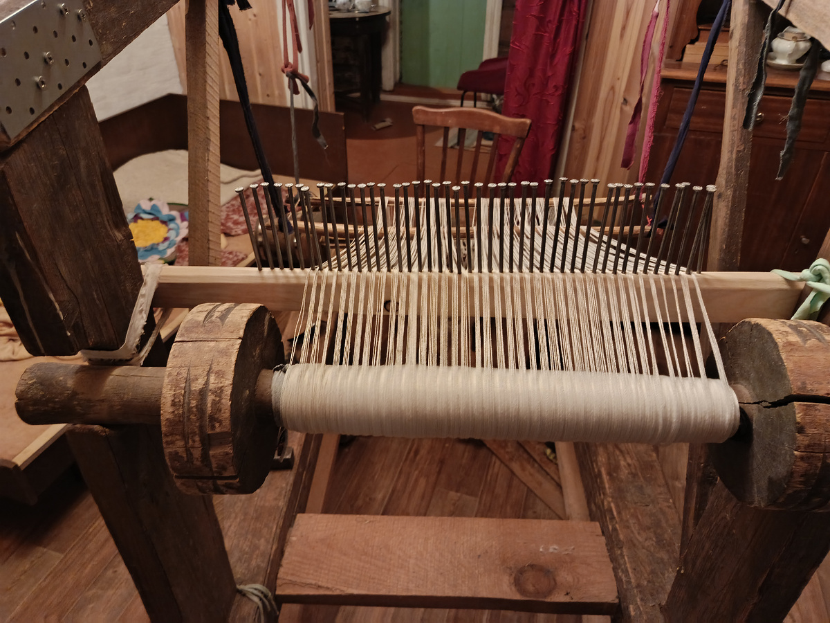 Я в этом году сама, без помощи, насновала на стене сарая нитки для ткацкого стана и мы с мужем уже их навили на колоду. Теперь осталось продеть в нитченки, бердо, а потом привязать к переднему валу и можно ткать. В доме и на усадьбе всегда работы хватит с избытком. Мы теперь больше не козоводы, но дел хватает. Уток то же решили вывести. Убрали всех молодых этого года, но оставались у нас две утки и селезень прошогодние. Волшебным образом обе утки пропали! (( Вечером будем сами убирать селезня, пока и он не исчез. Раньше на дворе жила наша алабайка-Лада, но в конце февраля она умерла. О ней пока очень тяжело думать и писать. Остался двор безо всякой охраны. Сарай после коз начали потихоньку ремонтировать, розу и гортензию надо укрыть, да и в доме мелких дел полно. Вот так потихоньку и входим в зиму. А в воскресенье выпал первый снег.