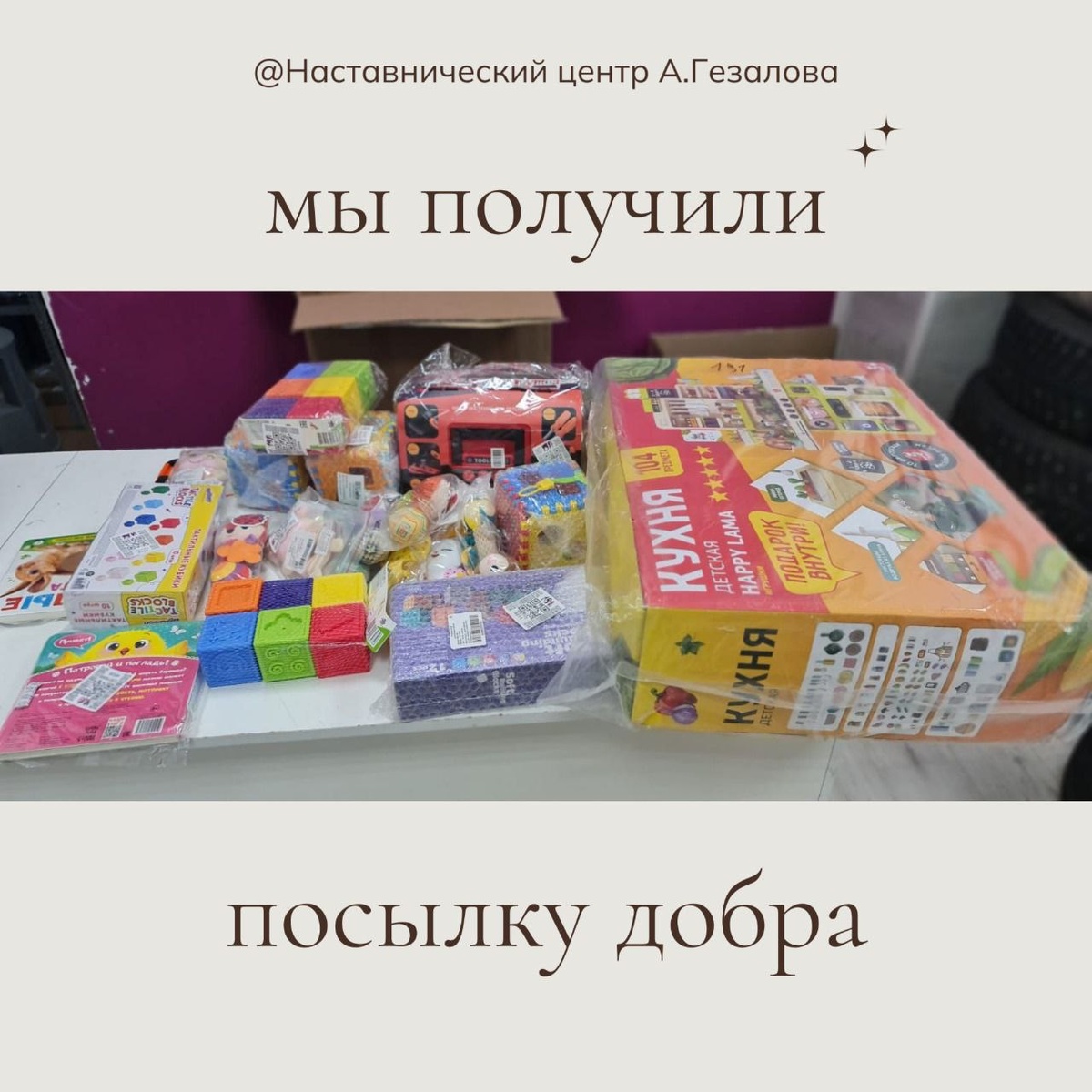 💌 "Посылка добра" в Дом ребенка при колонии п.Головино Мы продолжаем получать посылки от наших подписчиков. Сегодня мы получили детские, развивающие игрушки в подарок малышам осуждённых женщин при колонии в п.Головино. ❣️Мы благодарны всем,кто оказывает помощь, помогая нам помогать. 🔽 Подробнее об акции мы писали отдельный пост, по ссылке ниже: https://dzen.ru/media/id/5f942226d626b96de309cf85/-posylka-dobra-rabotaet-68ee6a9a95593f2617d7d723 🔽 Помочь нам можно любым из способов: 1️⃣ Поддержать финансово ( любой суммой) любой из проектов центра: https://nastavnik-gezalov.ru/pomoh-nashim-proektam/ 2️⃣ Принять участие в проекте "Посылка добра" https://dzen.ru/media/id/5f942226d626b96de309cf85/-posylka-dobra-rabotaet-68ee6a9a95593f2617d7d723 3️⃣ Поддержать любой суммой срочные сборы: https://nastavnik-gezalov.ru/vse-srochnye-sbory-centra/ 4️⃣ Пополнить в г.Москва "Короб добра" одеждой, игрушками ( см. подробнее по ссылке). https://nastavnik-gezalov.ru/2023/03/25/korob-dobr