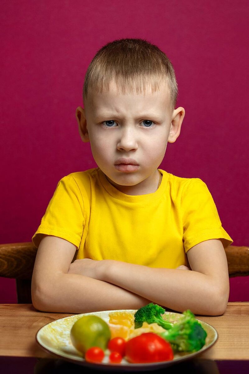 Основная идея этой фотографии - протест ребенка против полезной пищи. А вот цветом усиливала восприятие.