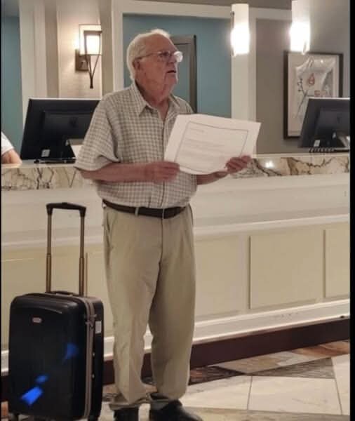 Его должны были чествовать, а не оставлять одного. Но мой дедушка, 74 года, оказался один за стойкой отеля с счётом на $12 000, который он никогда не подписывал. Они думали, что он промолчит — пока я не появился.