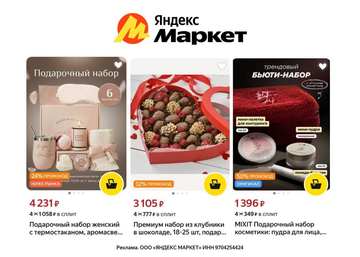 Наборы ко Дню Матери на Яндекс Маркет 💌 Подарочный набор женский с термостаканом, аромасвечой, мылом, солью для ванной пудрово-розовом цвете Премиум набор из клубники в шоколаде, 18-25 шт, подарок для девушки MIXIT Подарочный набор косметики: пудра для лица, помада для губ и палетка для скульптурирования MAKE UP ⭐️NORTME-41-AF - минус 2000₽ на один любой заказа от 8000₽ (для новых пользователей) *Промокод действует не на всех аккаунтах. ✅ Подписаться 🔣 Бот с промокодами