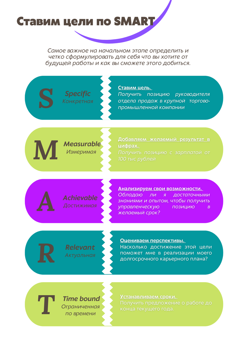 SMART — это аббревиатура, которая описывает ключевые характеристики хорошо сформулированной цели. Каждая буква имеет свое значение: