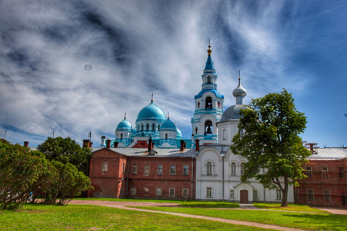 Остров Валаам. Валаамский Спасо-Преображенский монастырь. Точной даты основания монастыря нет, где то 11-12 век. Это единственное место, где природа заняла у меня больше времени, чем архитектура. Валаам привлекает своими красотами природы, ландшафта, архитектурой. Присутствует какое то таинство после полутора часов езды на теплоходе. Ладога! Голубая гладь, зеленые острова, скалы-удивительная природа! Скиты раскиданы по островам, а на самом большом монастырь с бело-голубыми куполами, прямо к небесам. Пение братией монастыря знаменным распевом трогает до глубины души. Монастырь останется в вашей душе и памяти навсегда, но, видимо, не у всех - очень много туристов и, чувствуется, что атмосфера святого места понемногу уходит с острова. Далее только фотографии.