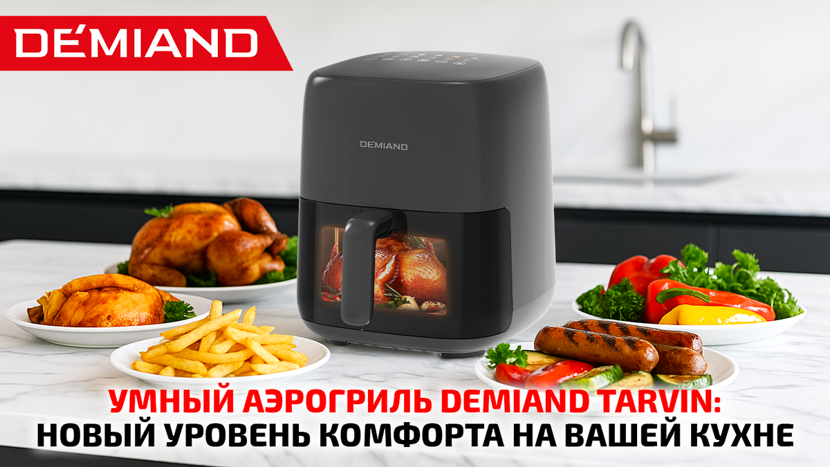Если вы давно мечтали готовить быстро, вкусно и с удовольствием — этот аэрогриль создан именно для вас. DEMIAND TARVIN объединяет технологии, стиль и заботу о деталях, превращая рутину в кулинарное вдохновение. 💡 Управление с телефона Скачайте приложение DEMIAND ПУЛЬТ — и ваш аэрогриль подчиняется вам с экрана смартфона.