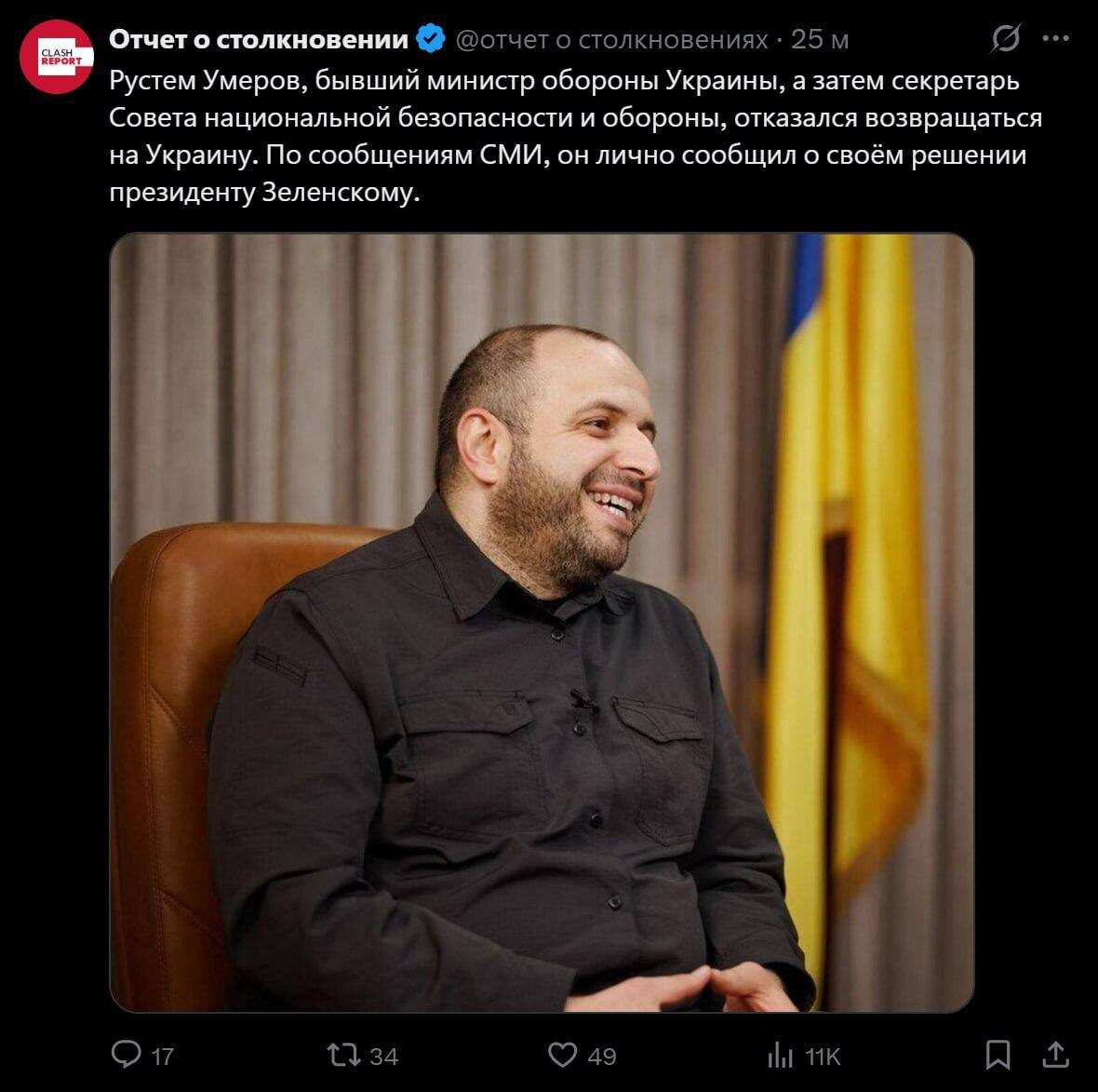 Ուկրաինայի Ազգային անվտանգության և պաշտպանության խորհրդի քարտուղար Ումերովը մեկնել է Թուրքիա և խոստացել է չվերադառնալ