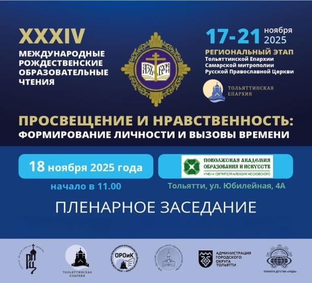 Программа и график секций VII Рождественских чтений Тольяттинской Епархии С 17 по 21 ноября 2025 года в Тольятти проходят VII Рождественские образовательные чтения Тольяттинской Епархии – региональная площадка XXXIV Международных Рождественских образлвательных чтений. В рамках программы запланировано 13 тематических секций, охватывающих вопросы духовно-нравственного воспитания, истории, культуры, педагогики и социального служения. Участие во всех секциях свободное, подробная программа и описание площадок доступны в PDF-файле по ссылке: https://tltepar.ru/anonsy/sobytiy/programma-vii-rozhdestvenskikh-chteniy-tolyattinskoy-eparkhii-i-grafik-sektsiy.html