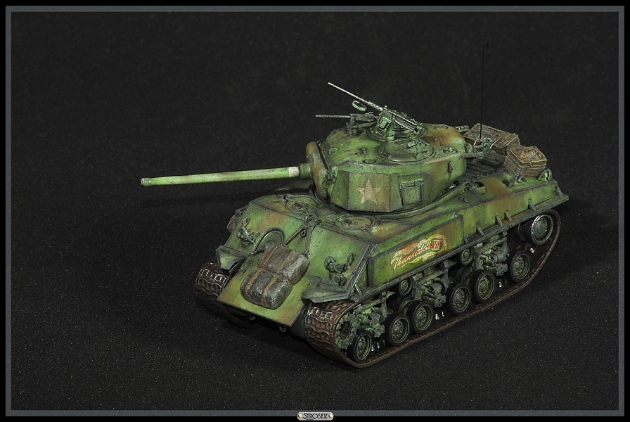Sherman M4A3E8 HVSS — крепыш Strosek Dragon, 1:72 =============================== Модель странная, это я про качество. Понятно, что это сборка с миру по нитке, поэтому часть литников весьма неплохая, часть — жуть. Сборка подвески отдельная песня, все на соплях, все хлипкое. Это хорошо видно на фотографиях, катки все в разные стороны едут. Кое какое травление присутствует, по верху претензий нет. Окраска без откровений, все как обычно. Немного распечатанного барахлишка повесил, для антуража. ================================ ===============================