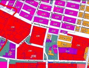 В новых микрорайонах, где сплошные многоэтажки и жилые зоны, появилось много зон ОД-1 — зона делового, общественного и коммерческого назначения (на рисунке фиолетовые). В них, кроме магазинов, рынков, можно использовать территорию для хранения автотранспорта, для служебных гаражей, стоянок. Вдоль дорог убирают существующие стоянки и автосервисы, чтобы потом всё это перешло в спальные районы?
