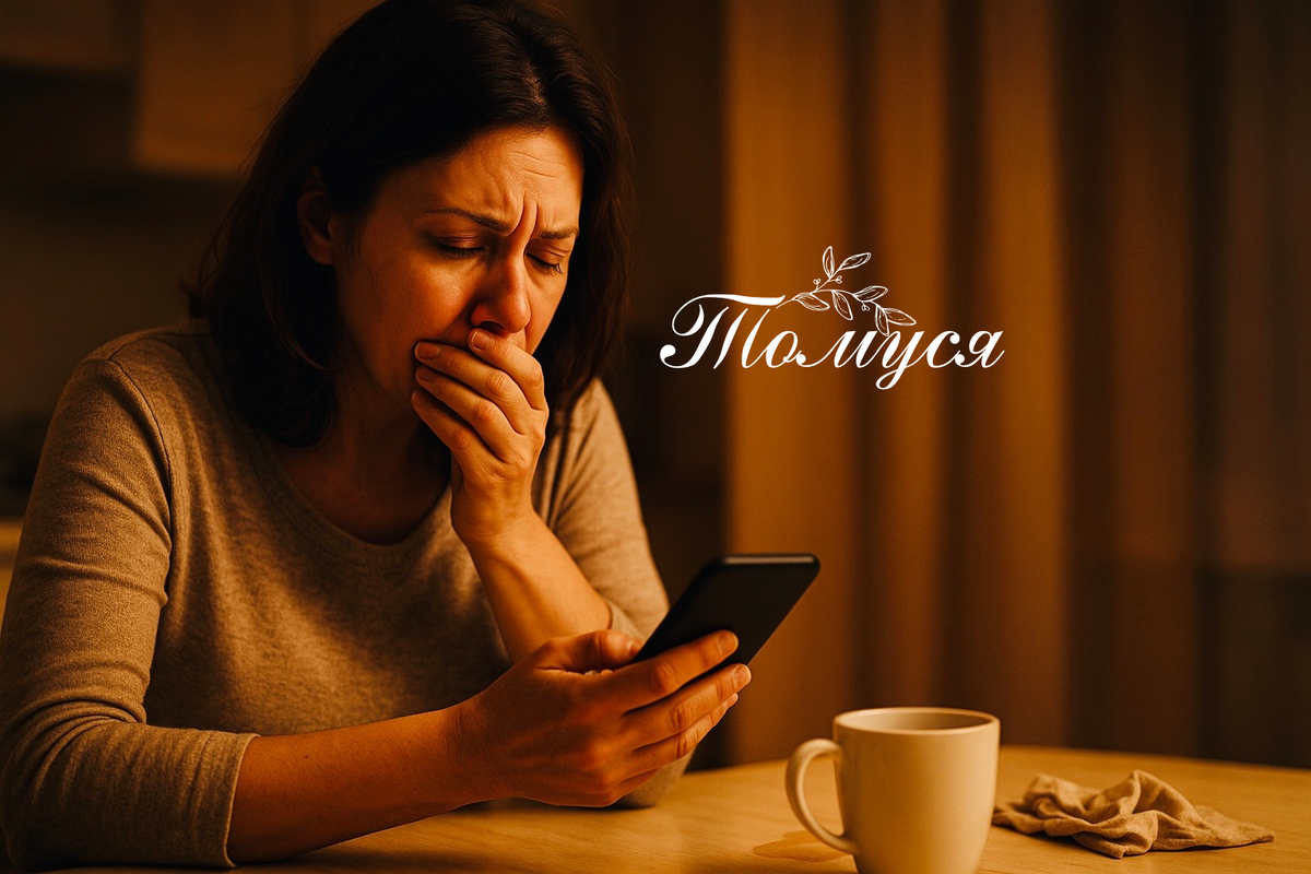Пять слов на экране телефона. Всего пять слов — и мир вокруг будто замер. Кружка с кофе выскользнула из рук, грохнулась об стол, чай разлился темной лужей по клеенке. Ольга смотрела на экран и не могла вдохнуть.
