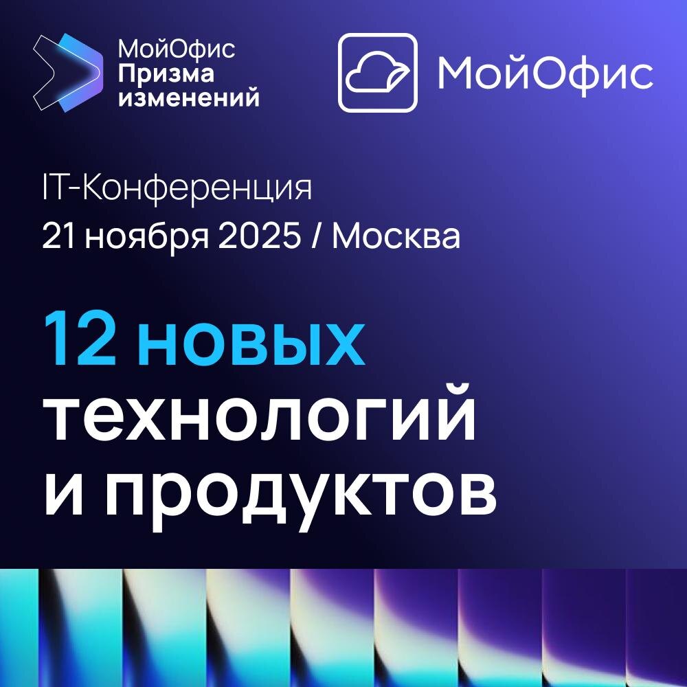 Ноябрь обещает быть жарким для ИТ-индустрии! Мы организуем масштабную конференцию «МойОфис Призма изменений», где представим новые технологии и продукты МойОфис, а также поговорим о трансформации офисного ПО. 👉 Регистрация онлайн для юридических лиц (исключая ИП) 💡 Что вас ждёт: 💬 В отдельной демозоне конференции вы первыми сможете протестировать новые решения МойОфис, а также прочувствовать тот самый баланс между классическим офисным ПО и инновационными продуктами. 📅 Когда: 21 ноября 📍 Где: онлайн и офлайн в Москве 👉 Регистрация онлайн для юридических лиц (исключая ИП)