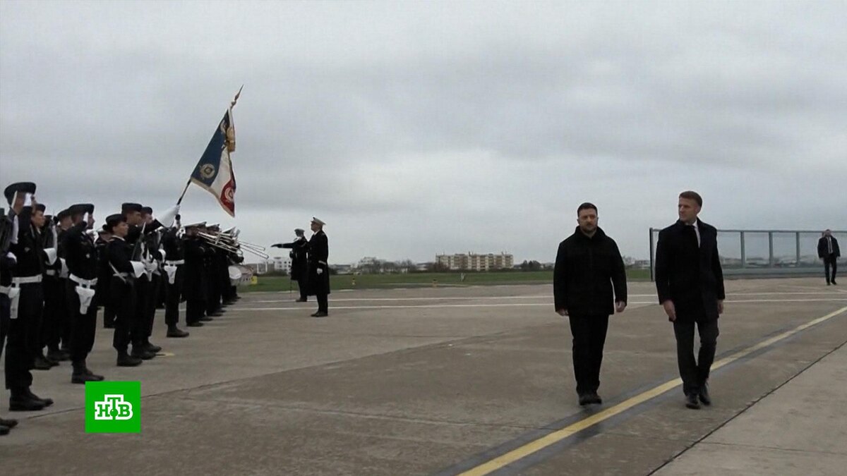 [ Смотреть видео на сайте НТВ ] Владимир Зеленский прибыл в Париж, чтобы в Елисейском дворце обсудить с президентом Франции новые поставки вооружений на Украину. Владимир Зеленский в девятый раз с февраля 2022 года прибыл во Францию — он хочет заключить сделки на поставку систем ПВО, ракет и истребителей. Местные СМИ сообщают, что Зеленский и Макрон уже подписали соглашение, «направленное на укрепление обороноспособности Украины». По словам Зеленского, речь идет о поставках Киеву сотни истребителей Rafale. Впрочем, откуда Париж возьмет вооружение для передачи Киеву, пока не ясно. Возможно, в ход пойдут уже существующие французские запасы. Не исключаются и поставки военной техники следующего поколения — по новым долгосрочным заказам. Визит проходит на фоне громкого коррупционного скандала, разразившегося на Украине. Хищения, взятки, махинации — роль самого Зеленского в этих схемах пока не ясна. Говорят, украинские антикоррупцинные ведомства обнародовали лишь малую часть материалов. А ев