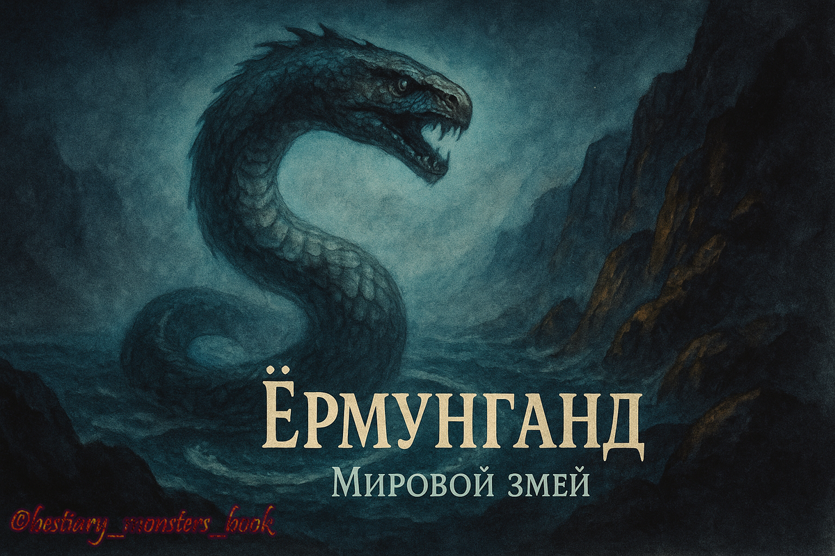Враг Тора, круг мира Вступление Холодный прибой дышит из тумана, прибрежные камни покрыты водорослями и солью. На горизонте — не линия, а пояс, будто кто-то обвёл мир по кромке воды. Саги говорят: это Ёрмунганд / Jörmungandr, Мировой змей. Он не гонится — опоясывает: держит океан кольцом, дремлет в глубинах и ждёт часа, когда море встанет стеной. 1) Откуда он взялся В скандинавском мироустройстве богам заранее предсказали: дети Локи и великанши Ангрбоды принесут беду. Один велел разлучить трёх: волка Фенрира вырастили в Асгарде, деву Хель отправили властвовать над царством мёртвых, а змея бросили в океан, окружающий Мидгард — «средний двор» людей. Там, в солёной темноте, змей рос без меры, пока не обвил землю и не сомкнул зубы на собственном хвосте. Так он превратился из чудовища в границу — живую черту между порядком берега и хаосом бездны. Саги и «Эдды» складывают эту картину из фрагментов. В «Речах вёльвы / Völuspá» звучит пророчество о конце мира: море взовьётся, цепи лопнут, и