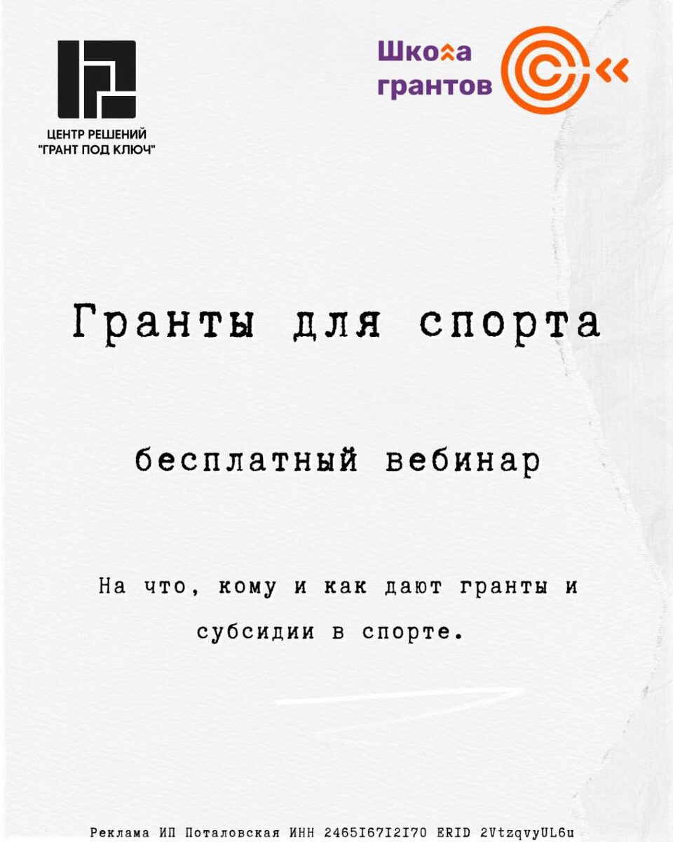 Не в курсе? Многие руководители клубов, спортшколы, тренеры и другие субъекты спорта не знают, что могут получить гранты на развитие. Даже сейчас есть куда податься и получить до 5 млн поддержки. Коллеги посоветовали бесплатный онлайн-вебинар от Школы грантов. Спецы с 17-летним опытом подскажут, как и на что получить гранты и субсидии в спорте. 20 ноября, 10:00 мск, бесплатно.