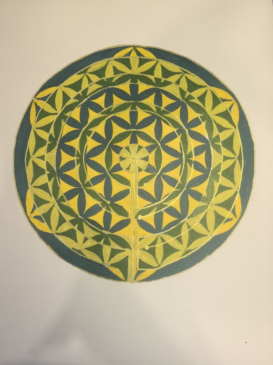 Когда я дорисовала картину с фракталом, меня тут же потянуло обратно в книгу "Древняя тайна цветка жизни