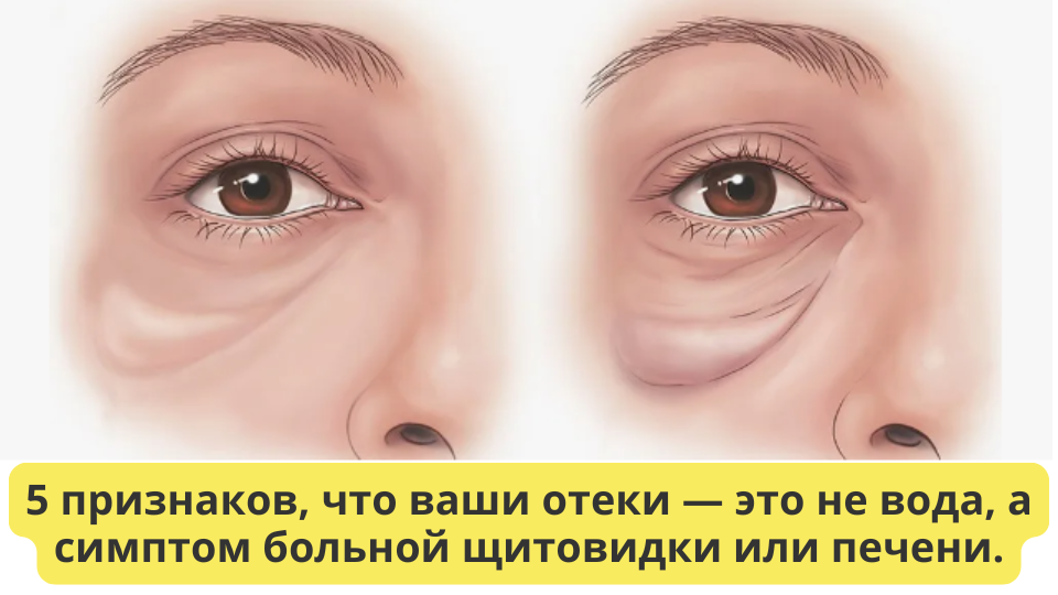 📌 1. «Подушки» под глазами, которые не проходят к вечеру