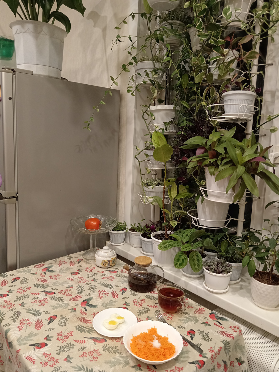 Вот когда сын сам себе завтрак приготовил, мне и делать нечего на кухне. Не знала куда себя девать. Ну хоть морковь себе на салат потру.