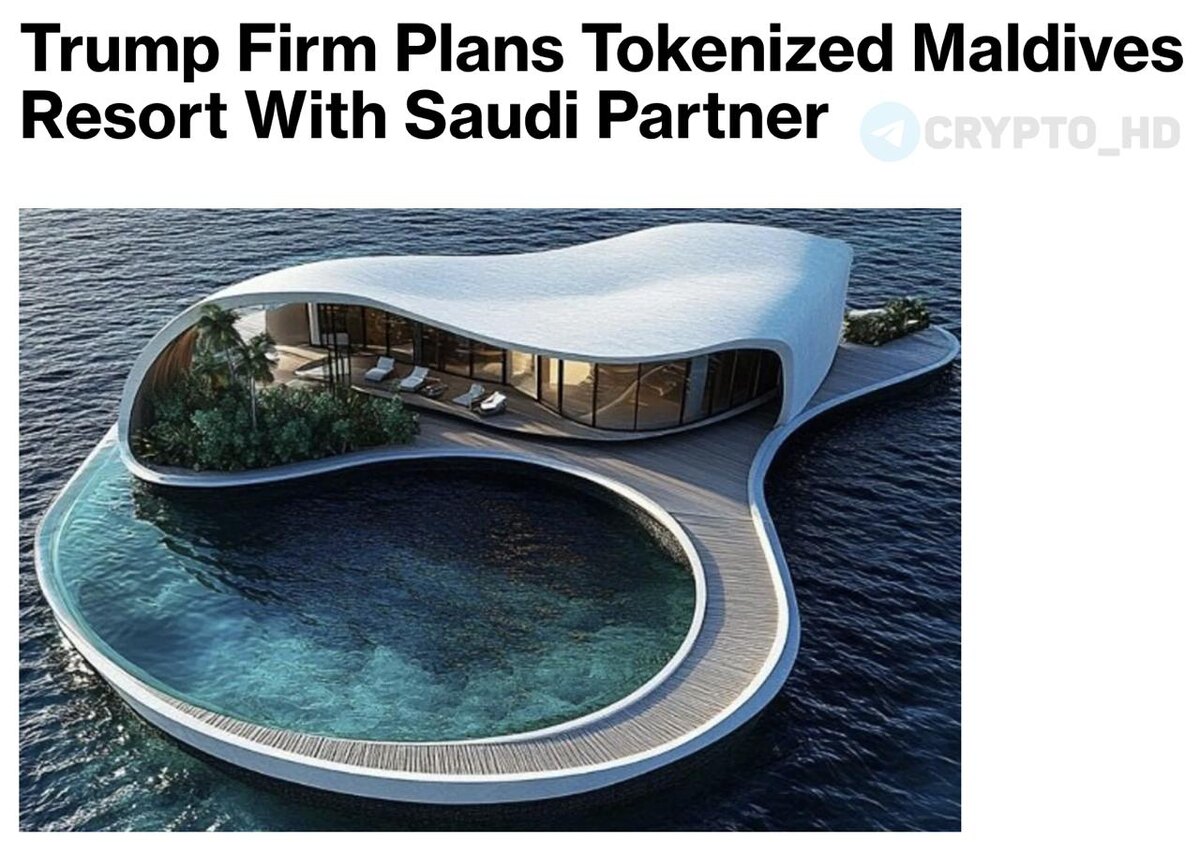 🇲🇻 Дональд Трамп строит токенизированный люксовый курорт на Мальдивах. Компания Дональда Трампа The Trump Organization совместно с саудовским застройщиком Dar Global запускает первый в мире гостиничный проект «Trump International Hotel Maldives», в котором сам этап строительства будет токенизирован. Инвесторы смогут покупать цифровые доли проекта в виде токенов и получить доступ к доходности на этапе строительства. Что строят: • 80 вилл на пляже и над водой. • Полный брендированный комплекс «Trump» с люксовой инфраструктурой. • Открытие в конце 2028 года. Ранее: - крипто-доходы Трампа - крипто-империя Сryptо Headlines