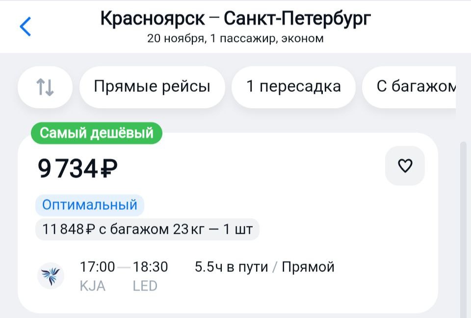 В Петербург из Красноярска в четверг. Обратно тоже такой ценник.